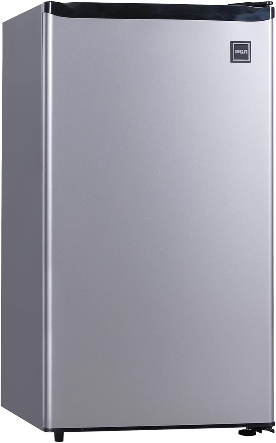 RCA RFR322 Mini Refrigerator, Compact Freezer Compartment, Adjustable Thermostat Control, Reversible Door, Ideal Fridge for Dorm, Office, Apartment, Platinum Stainless, 3.2 Cubic Feet