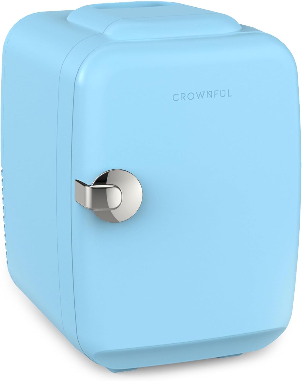 CROWNFUL Mini Fridge, 4 Liter/6 Can Portable Cooler and Warmer Personal Refrigerator for Skin Care, Cosmetics, Beverage, Food,Great for Bedroom, Office, Car, Dorm, ETL Listed (White)
