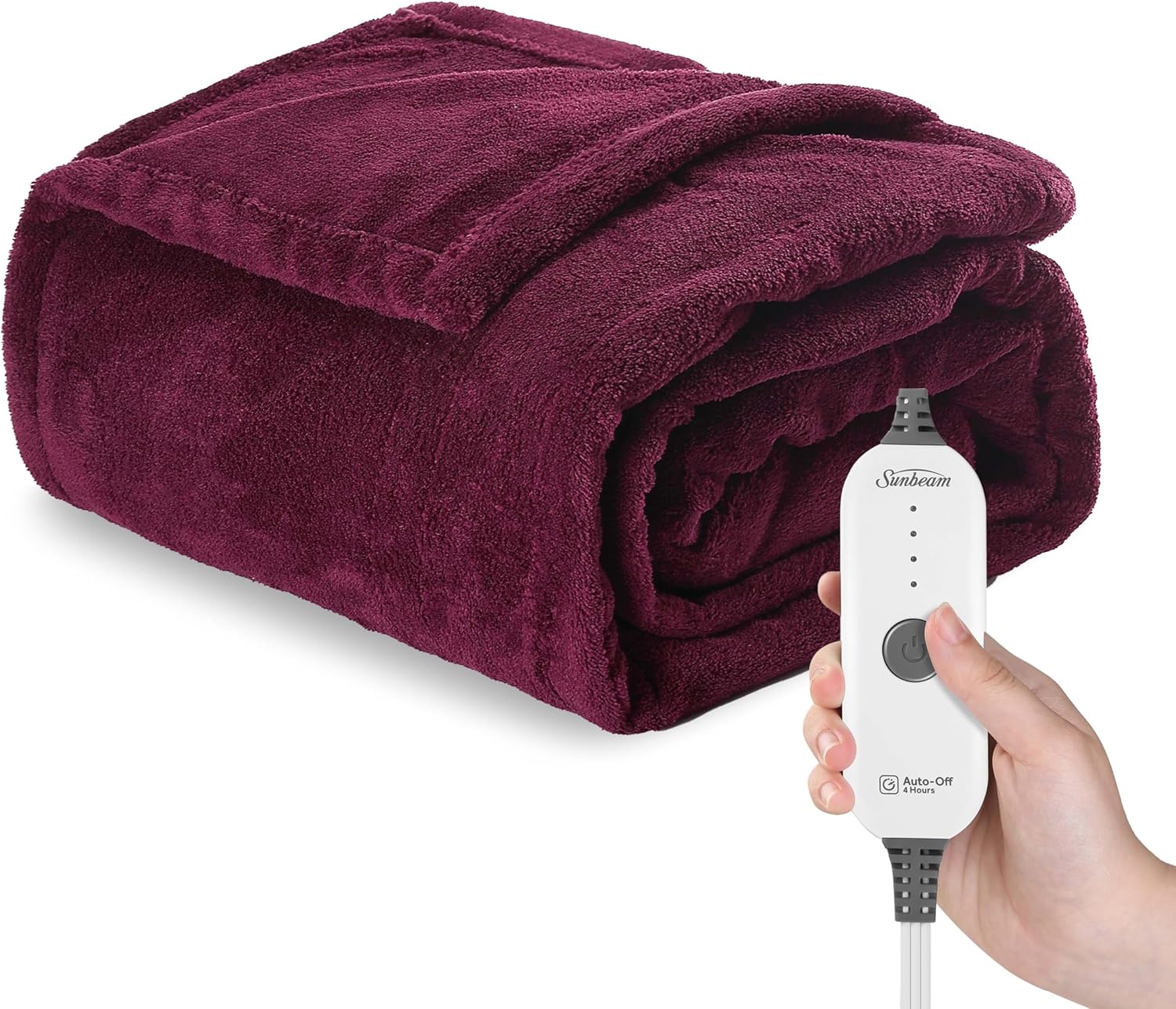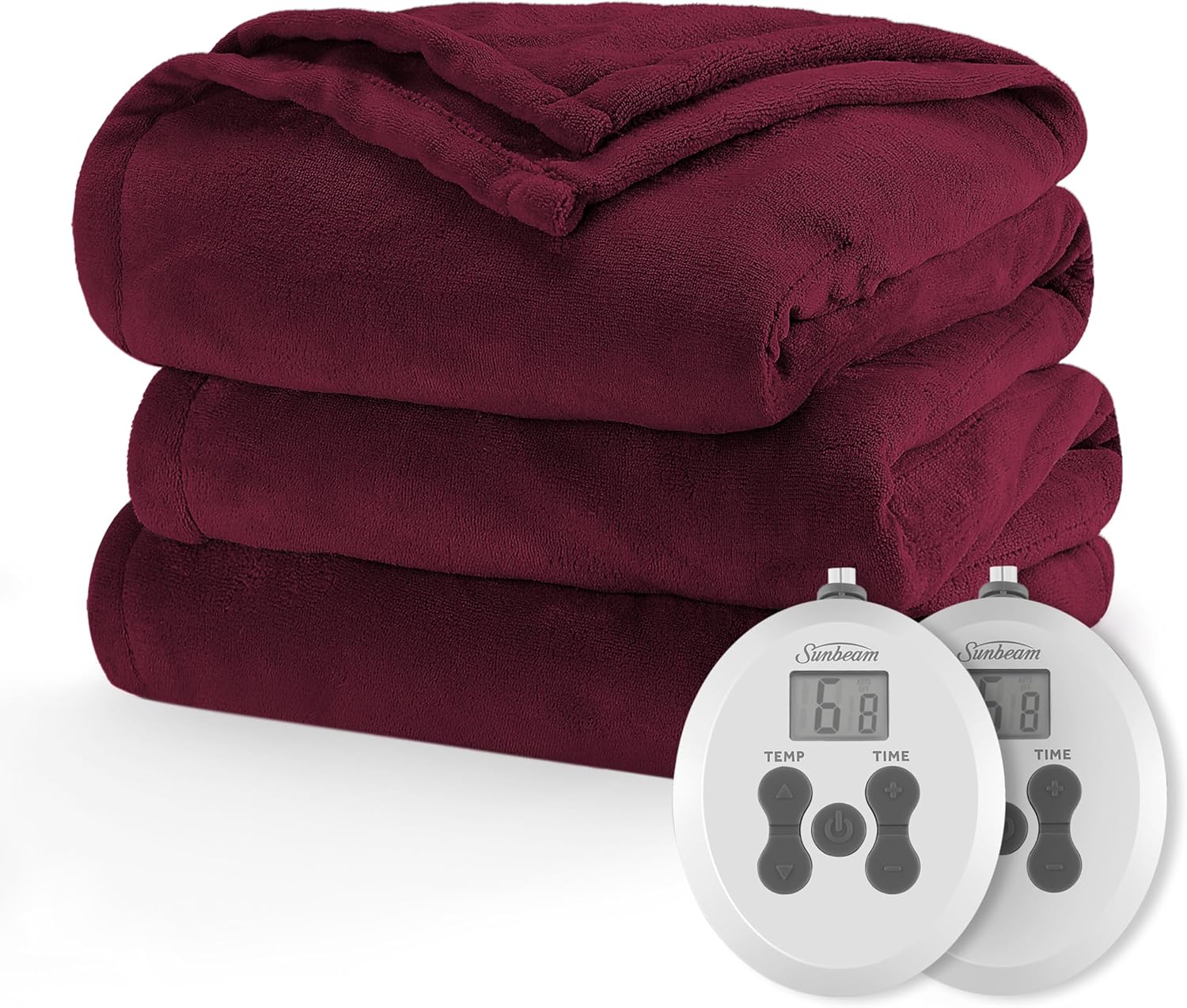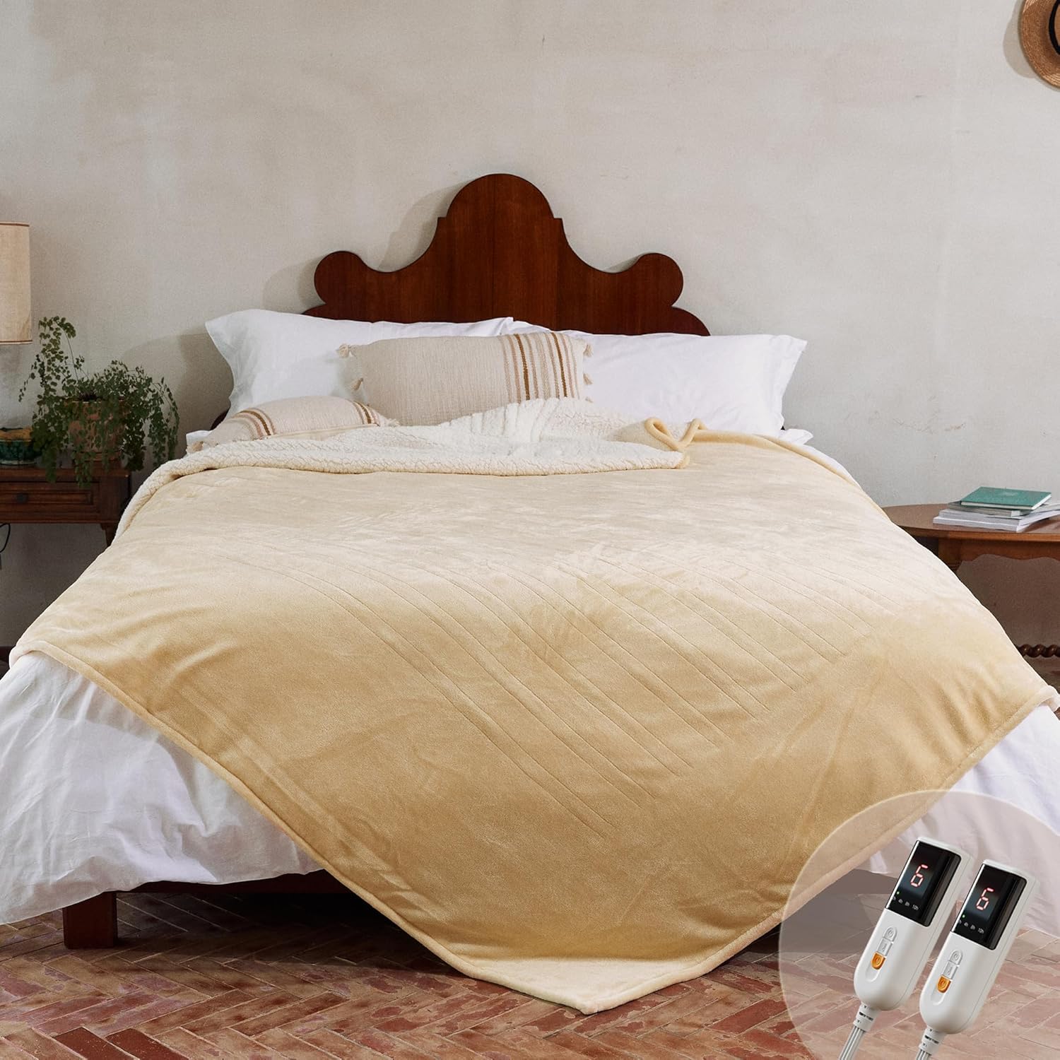 Sunbeam Electric Royal Luxe Microplush Heated Blanket 12 Heat Settings, 12-Hour Selectable Auto Shut-Off, Fast Heating, Warm and Cozy, Sandstone Color, Queen, 90" x 84"