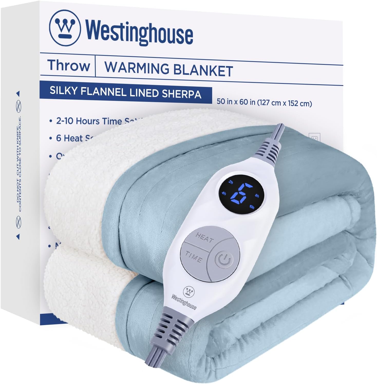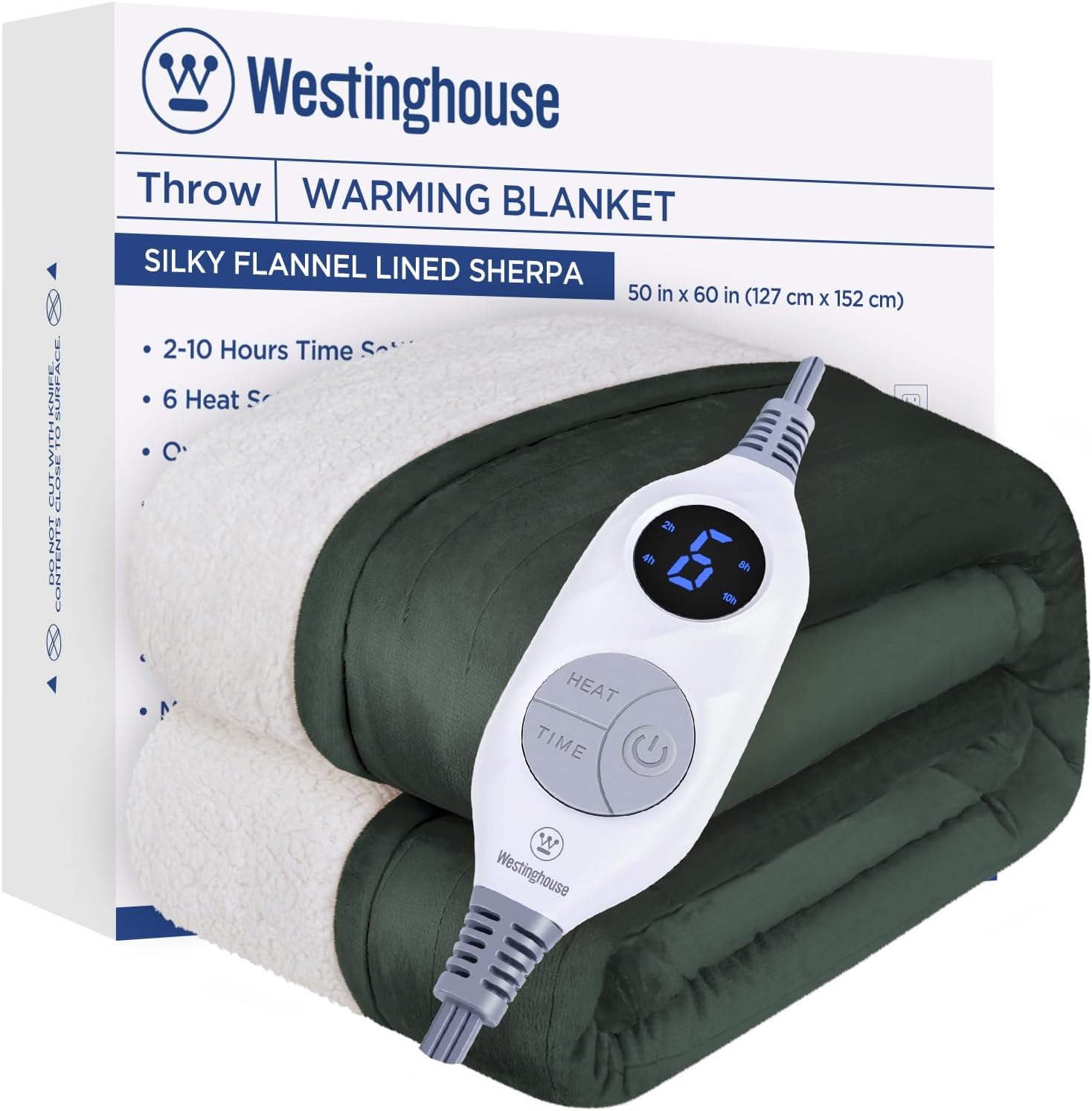 Westinghouse Heated Throw Blanket, Electric Blanket Throw with 6 Heating Levels and 2-10 Hours Time Settings, Flannel to Sherpa Super Cozy Heated Blanket Machine Washable, 50x60 inch, Charcoal