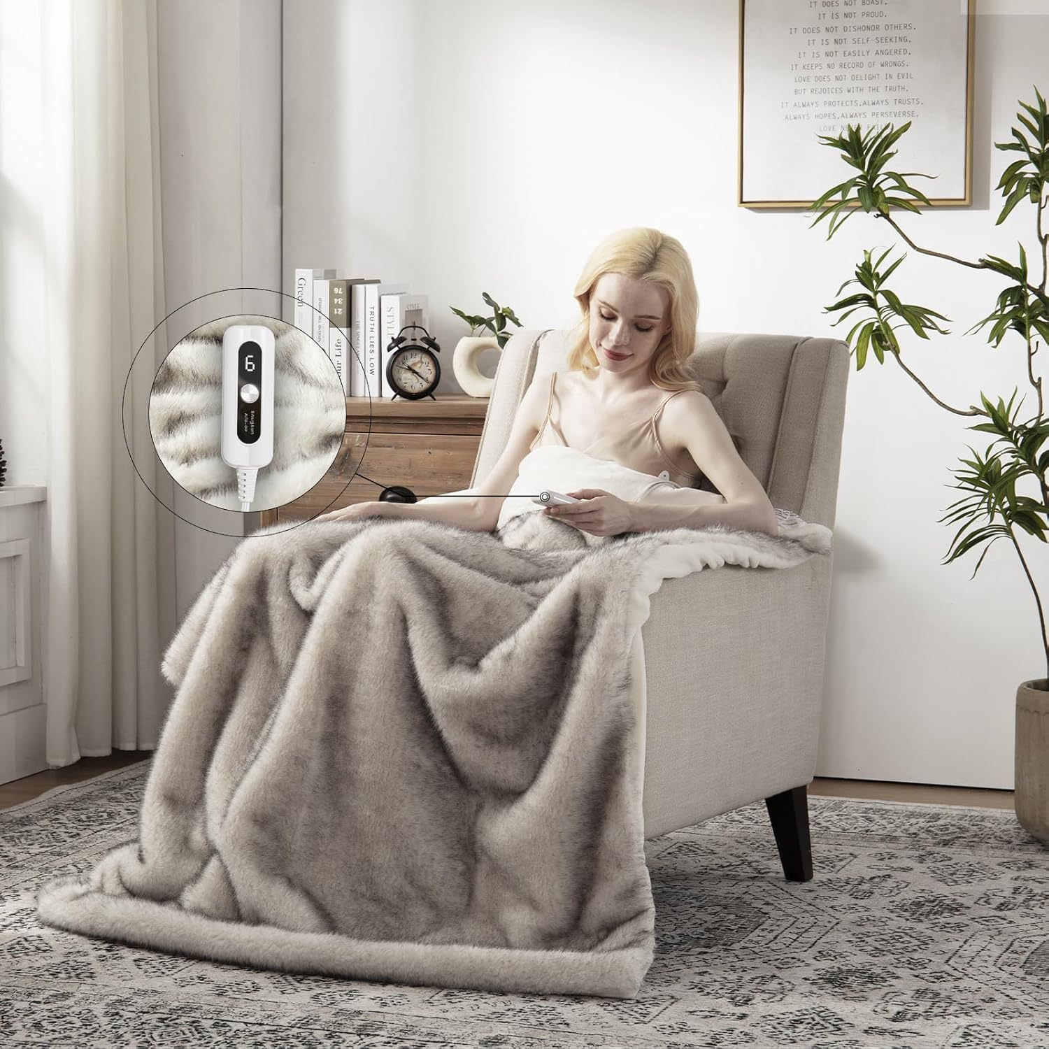 GOTCOZY Heated Blanket Electric Throw 50''X60''- Soft Silky Plush Electric Blanket with 4 Heating Level & 3 Hour Auto Off Heating Blanket, ETL Certified Machine Washable (Rose Dust)