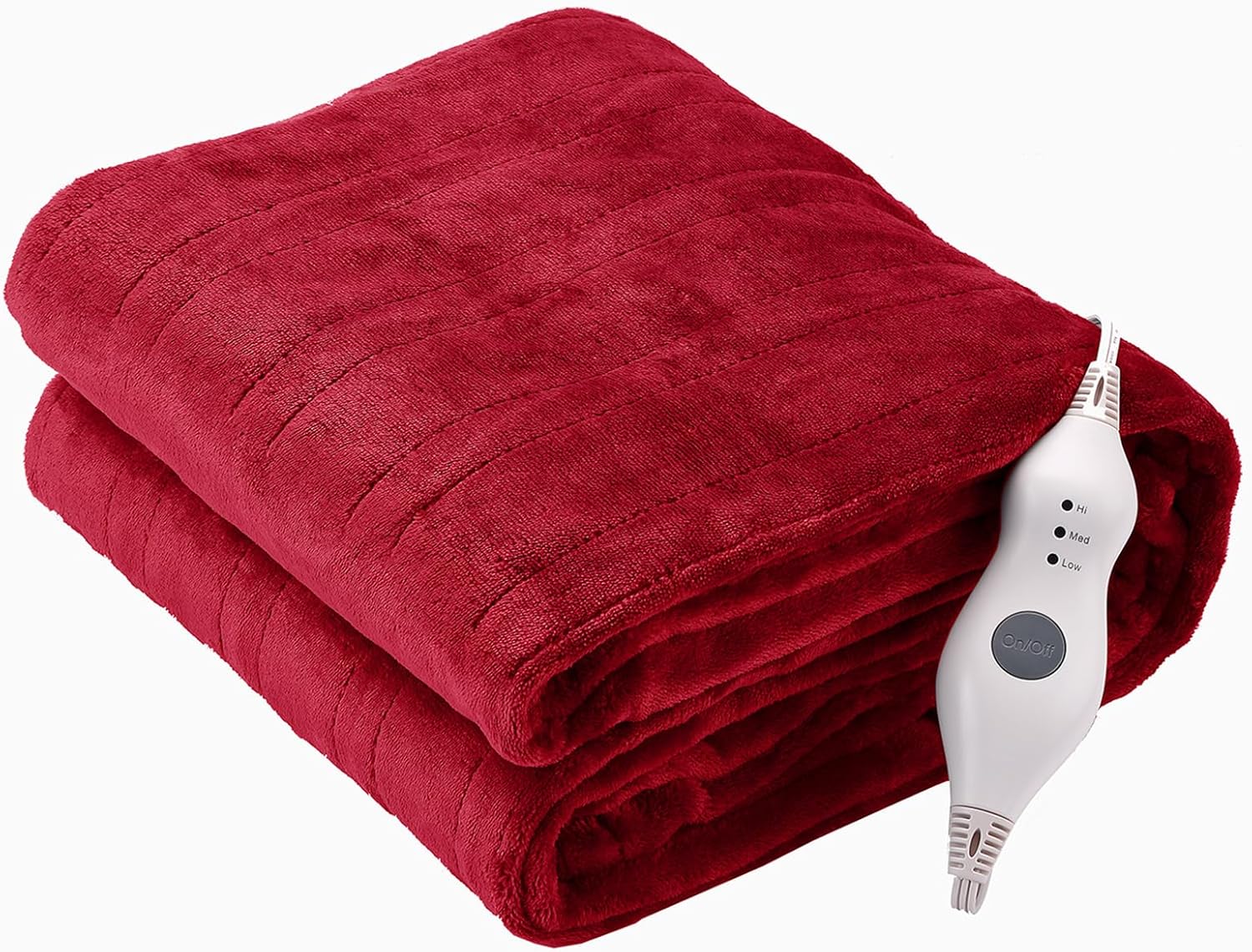 Homemate Heated Blanket Electric Throw - 50"x60" Heating Blanket Throw 1/2/4/6/8 Hours Auto-off 10 Heat Level Heat Blanket Over-heat Protection Flannel Sherpa Heater Blanket Electric ETL Certification
